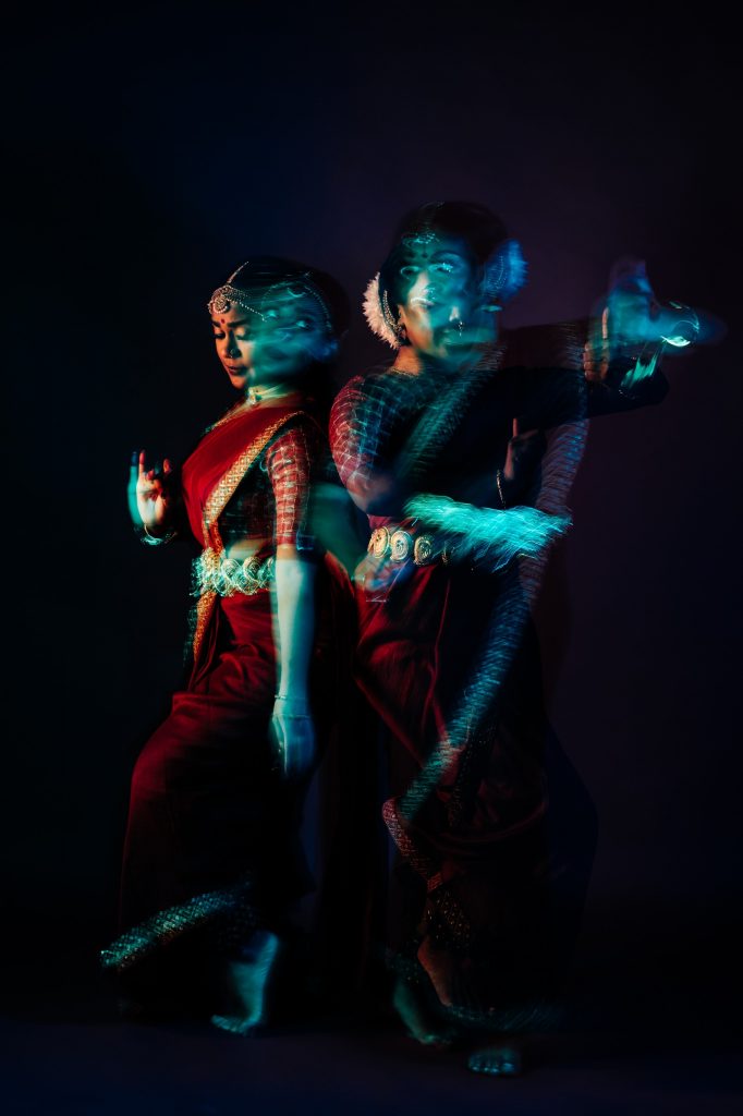 Nées en Suisse de parents sri-lankais, Mithuja et Janusha pratiquent le bharatanatyam depuis plus de vingt ans. Cette danse est au cœur de leurs créations. Avec le Kuthu, leur permettent de se connecter avec leurs racines tamoules.